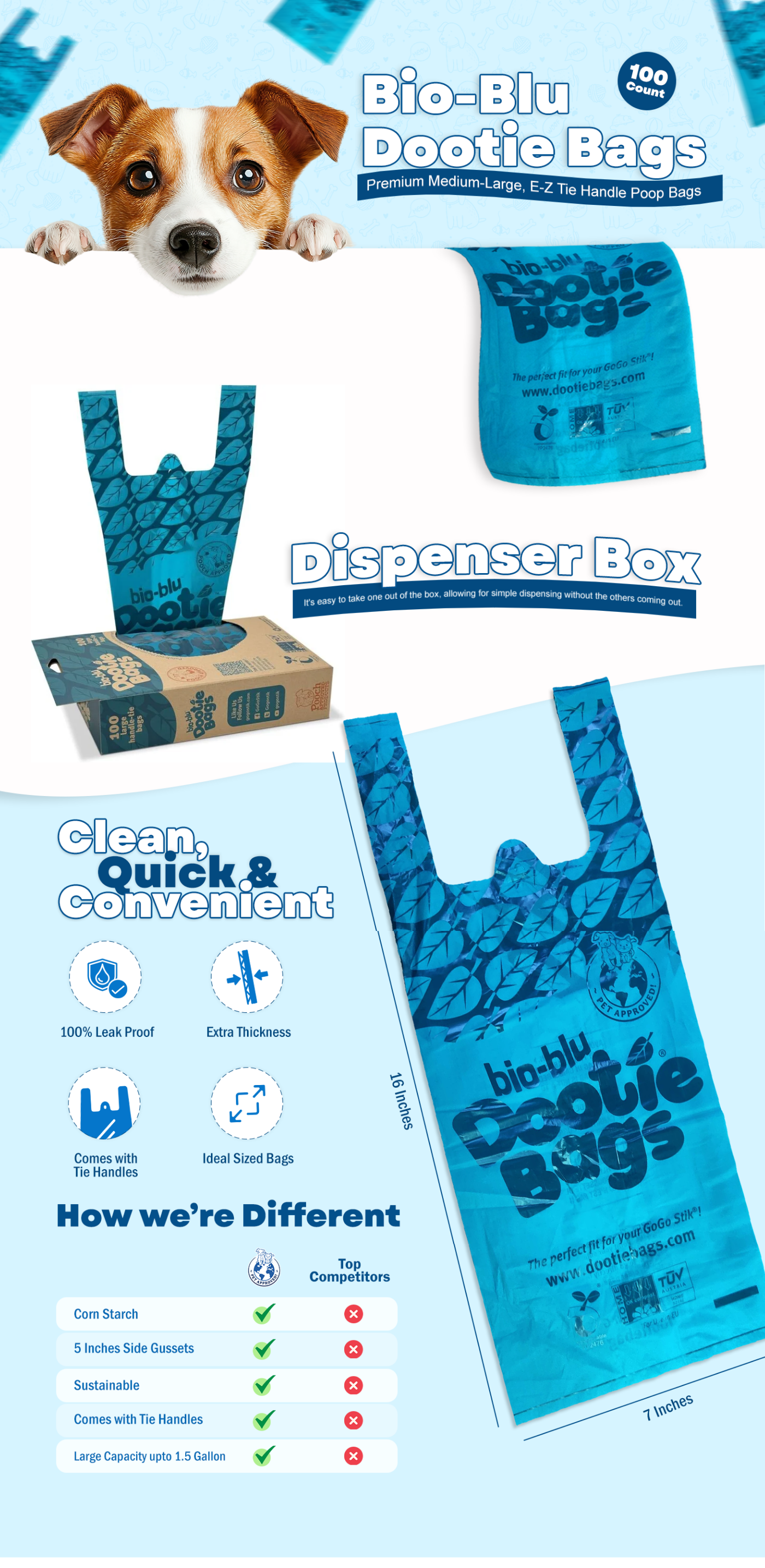 Bio-Blu Dootie Bags™, Large EZ Tie Handle Poop Bags, with Premium Materials