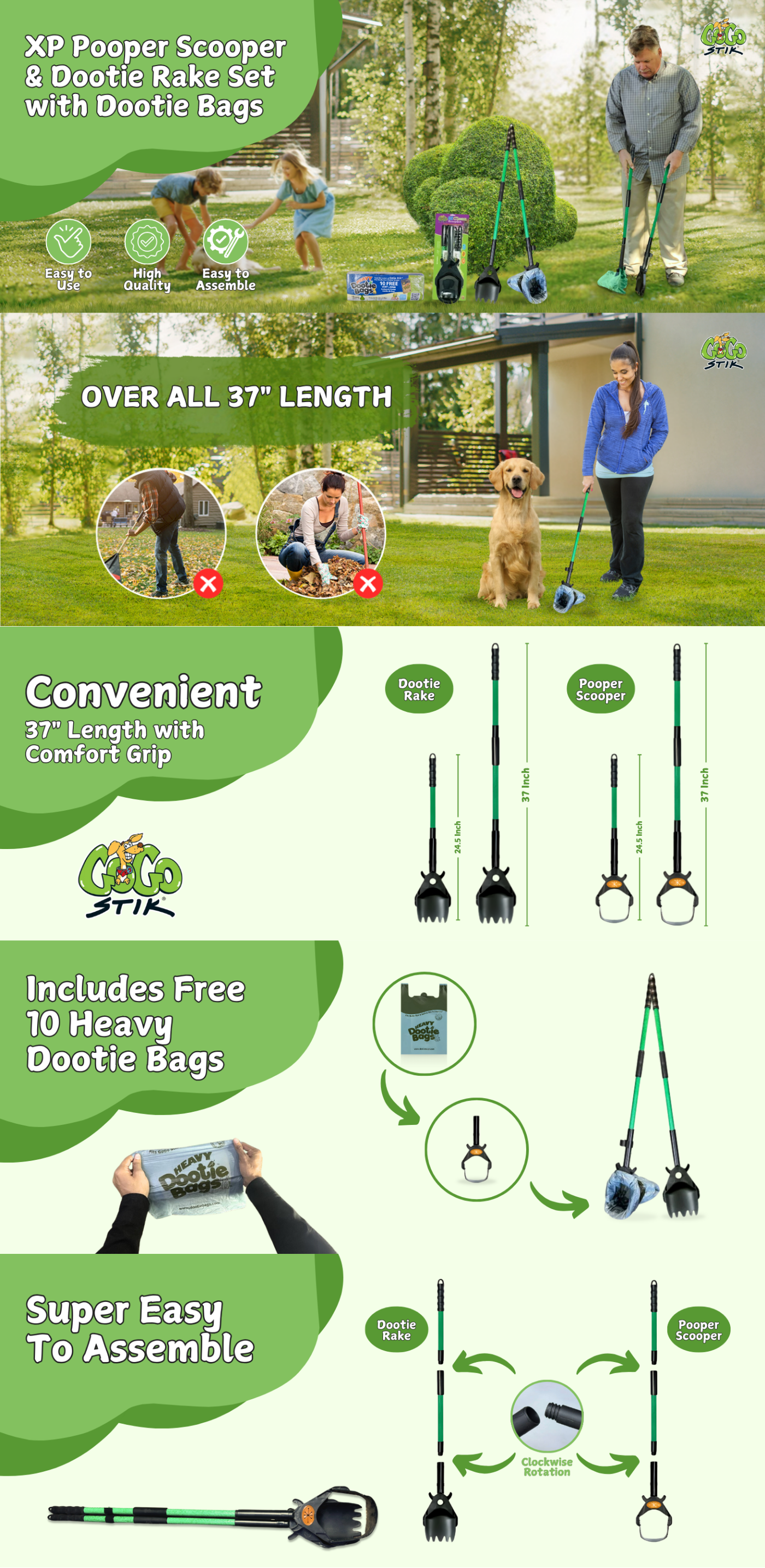 SAVE YOUR BACK! No Bending. No Kneeling. No Touching or Handling a Stinky Bag. (For Indoor or Challenging Surfaces Like Gravel, Consider Using the GoGo Stik EZ Dootie Rake!)
